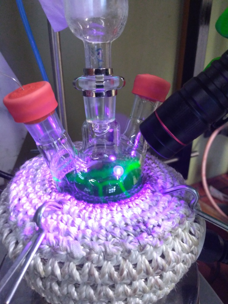Once all the water has bubble out under the vacuum in the system, the reaction to create NPL can take place: