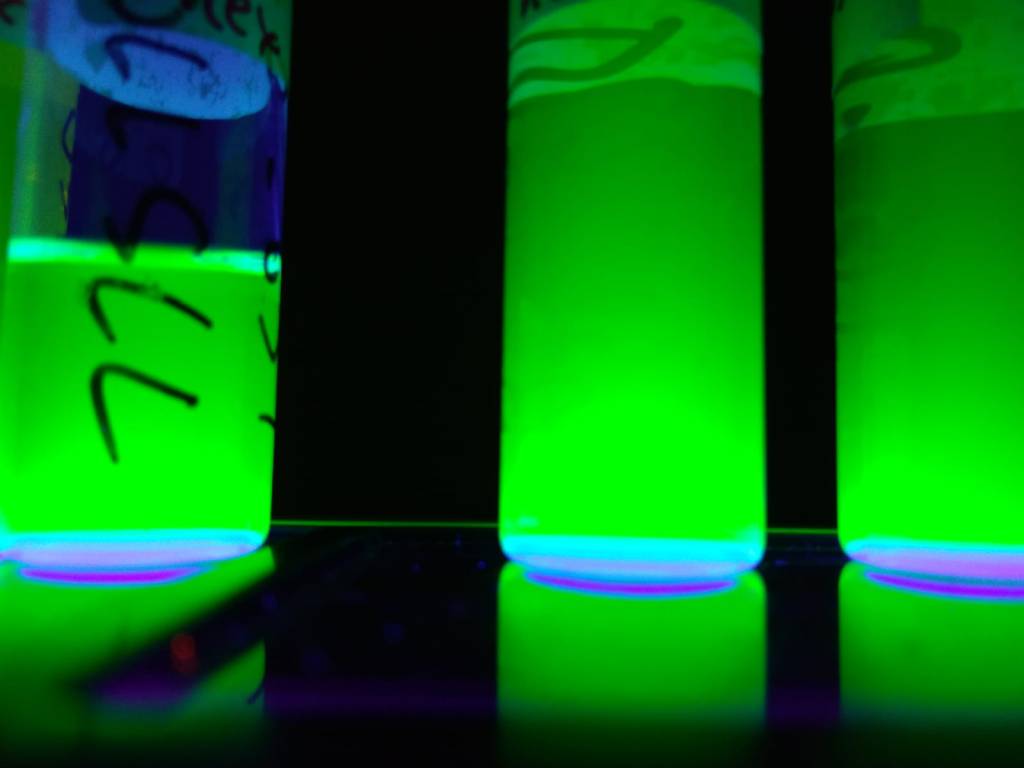 Now you have a nice batch of… NPLs and quantum dots! What? Really? Unfortunately, the nanoparticles are much more thermodynamically favourable – in less gibberish, it is easier to make round-ish objects than other deformed shapes, as you need to control the direction of growth. But not all is lost, a simple play with some solvents (add some acetonitrile, hexane and isopropanol), make a wild ride in the centrifuge, and hop only NPLs remain. I know, I know, sound complicated. But really, not that difficult to make, you just need the proper equipment of course. And the cool stuff with all this cooking, is that you can change small steps and obtain different thicknesses of the same shape, or you can add another step and coat your NPL with something else (often we have CdSe/CdS layers). Chemistry is extremely versatile, and often careful preparation need to be done beforehand while trying to make a new synthesis (making new material, shape…), often with a design of experiments.